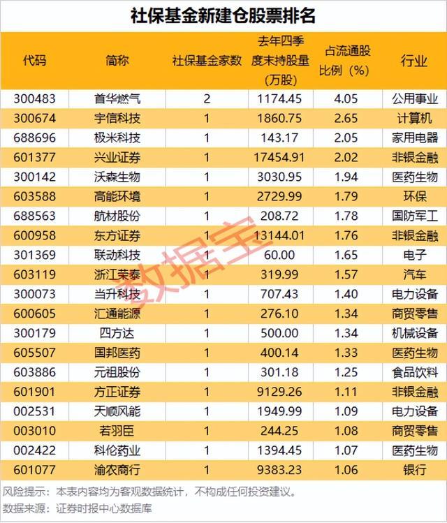 社保基金新建仓股票